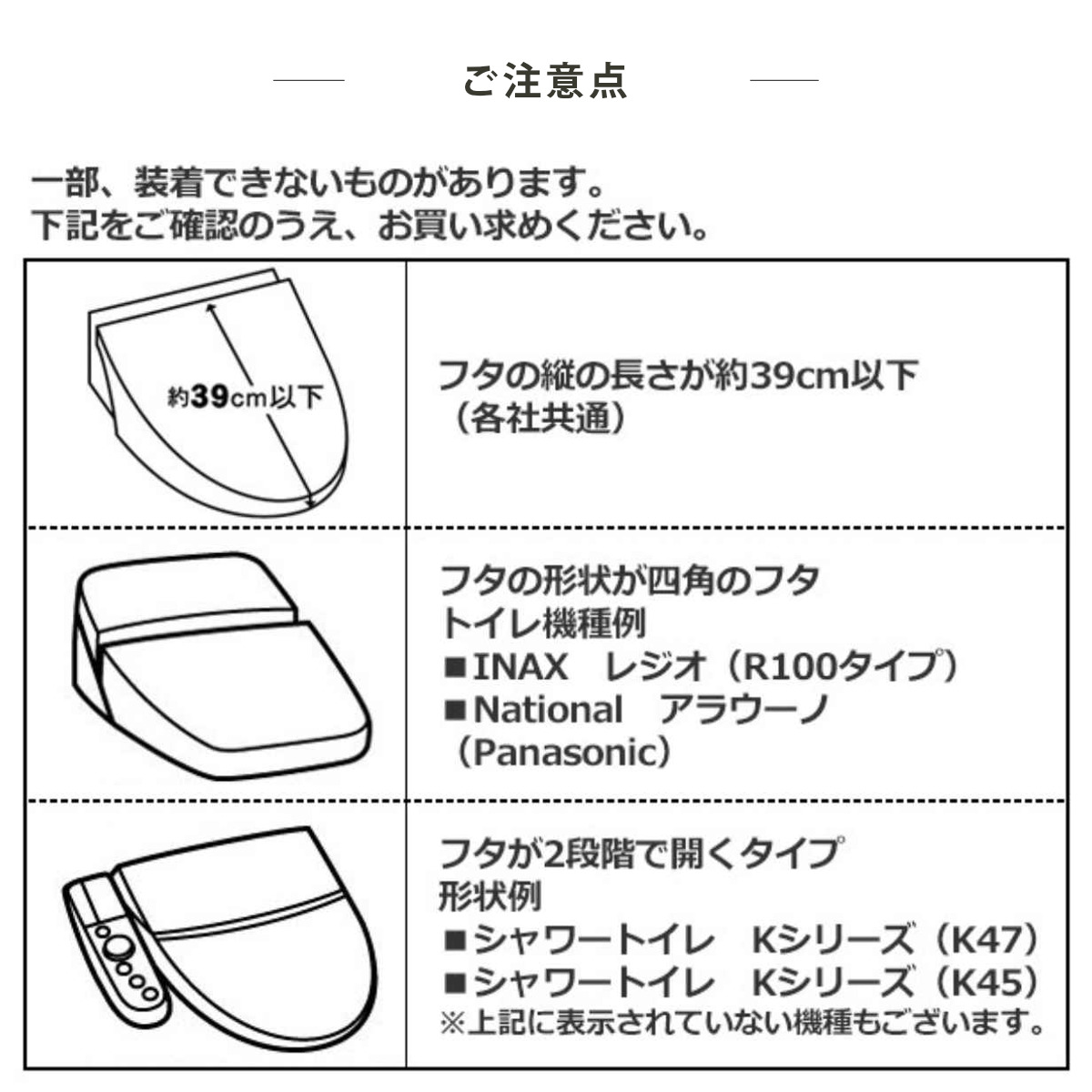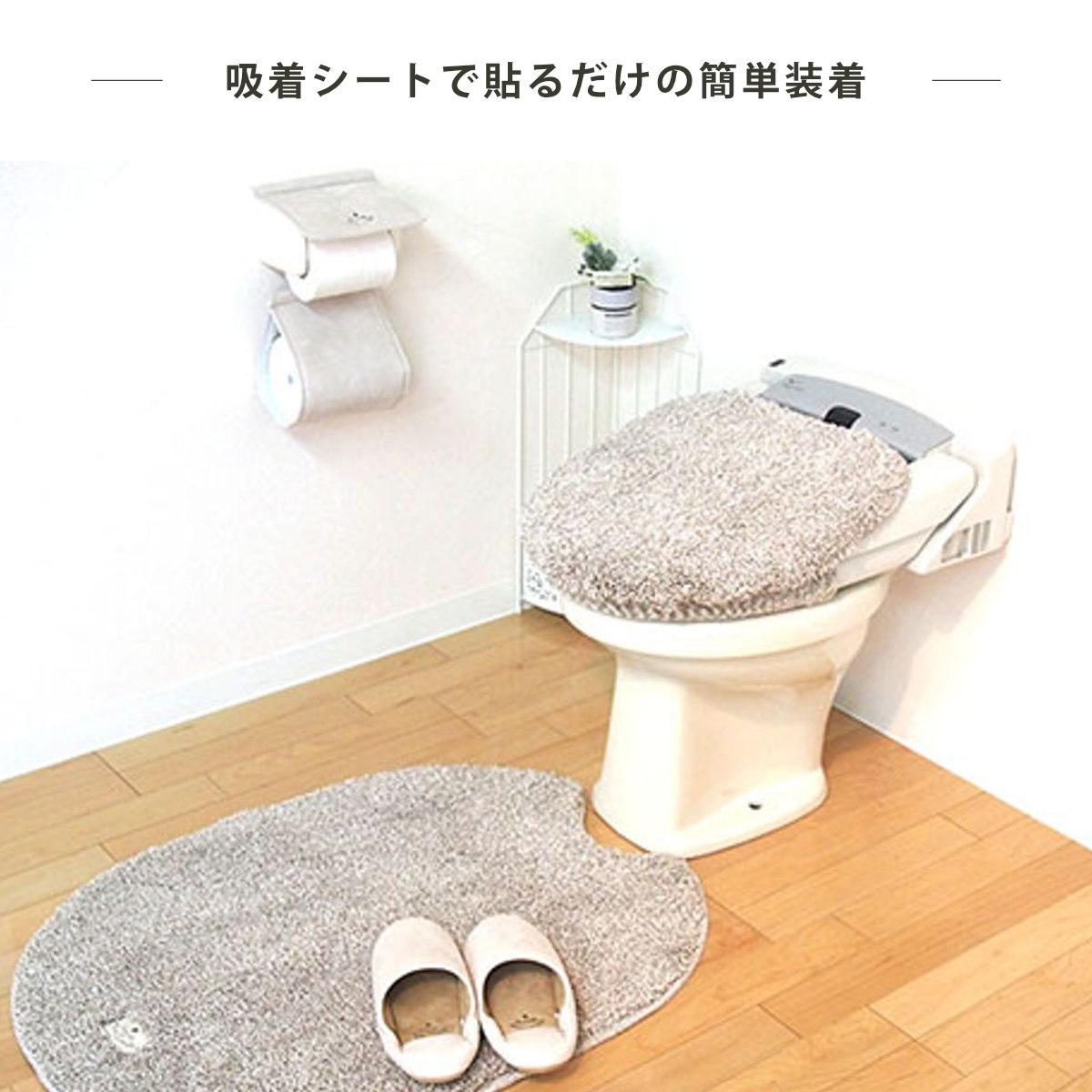裏面に縫製された吸着シートにより、普通型(U・O型)と洗浄・暖房型どちらでもお使いいただける兼用タイプです。