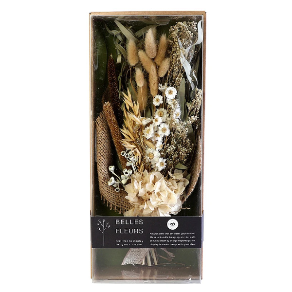 ドライフラワーにぴったりな雰囲気の箱に梱包されているので、ギフトとしてもおすすめです。中身が見える箱なので、貰った瞬間カラフルなブーケが目に飛び込んできて喜ばれそうです。また、箱に入れた状態のまま飾ることも出来ておすすめです。