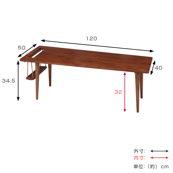 | サイズ | 約 幅120×奥行50×高さ34.5(cm) |