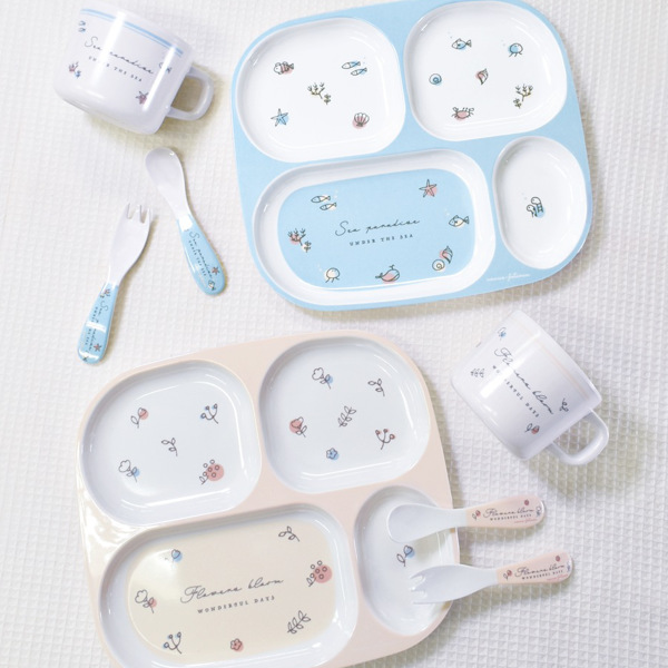 お子さまが成長しても使いやすいデザインの食器シリーズ。海・お花をモチーフとしたデザインで、子どもも大人もながく楽しむことができます。淡いパステルカラーがインテリアに馴染みやすく、毎日の食卓に使いやすいです。同じシリーズで揃えて使えば、食卓が華やかになり、楽しいご飯タイムになっておすすめです。また、ご出産やお食い初め用のプレゼントにもピッタリです。