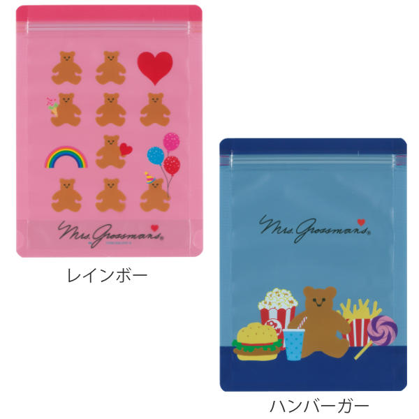 保存袋 ストレージバッグ Mrs.Grossmans ( ポリ袋 小分け袋 チャック付 ジッパー 袋 チャック付き袋 ジッパー袋 ジッパーバッグ ラッピング 4枚入り お菓子袋 ラッピング袋 小袋 マチ付き ラッピング用品 かわいい ) 【 ハンバーガー 】