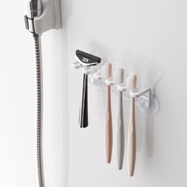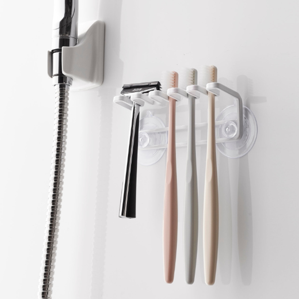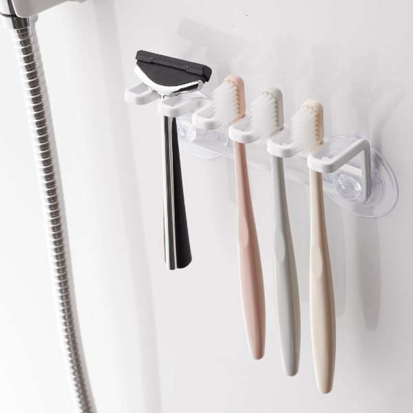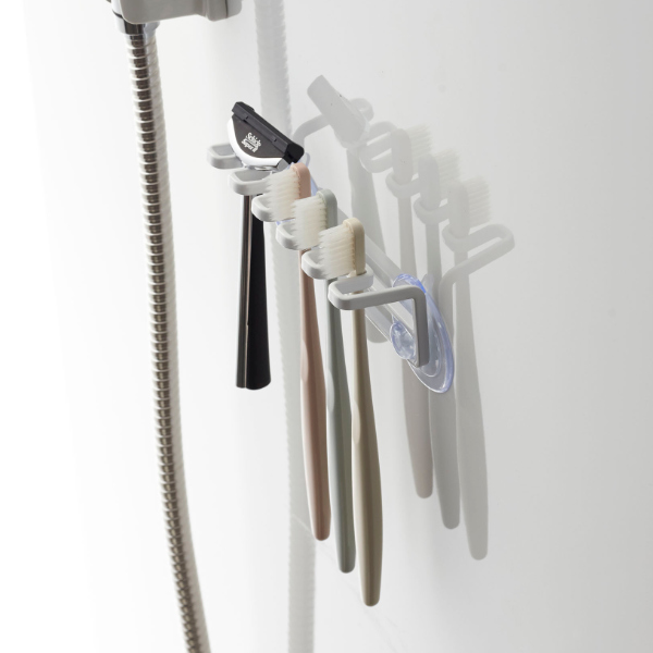 歯ブラシを5本並べて収納することが出来る歯ブラシ5連ホルダーです。まとめて収納出来るので、見た目もスッキリ片付きます。浮かせて保管できるので、水はけがよく、清潔にお使いいただけます。