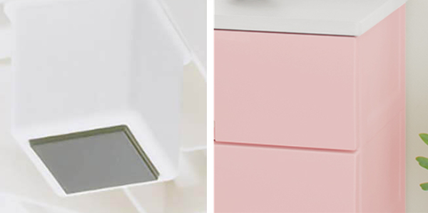 | 材質 | 本体、引き出し、ロック、ローラー:ポリプロピレン 脚:ポロプロピレン、ポリエチレン、(滑り止め) 前面パネル:スチロール樹脂 天板:MDF化粧板 |