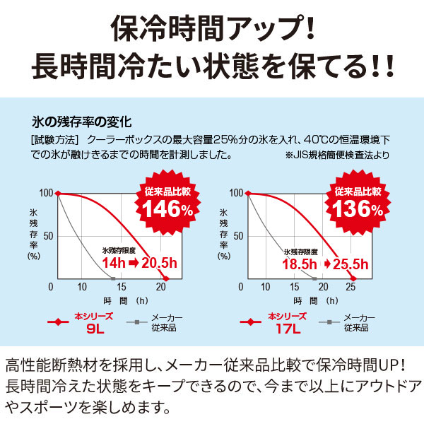 高性能断熱材で保冷時間を強化