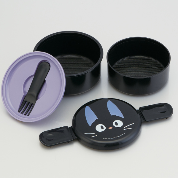 お弁当箱 2段 500ml 丸型 ランチボックス 魔女の宅急便 ジジ ( 弁当箱 ランチボックス レンジ対応 フォーク付き 女子 レンジOK お弁当 弁当 二段 二段弁当箱 入れ子式 女性 キャラクター )