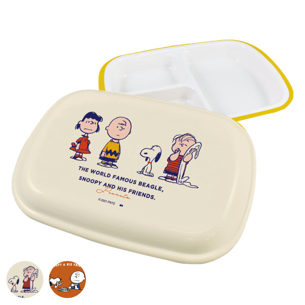 スヌーピーとピーナッツの仲間たちがデザインされたランチプレートです。仕切りが付いているので盛り付けが簡単にできます。ふわっと被せるフタ付で、盛り付けが崩れずホコリが入る心配もありません。家族のライフスタイルに合わせた作り置き用にピッタリです。