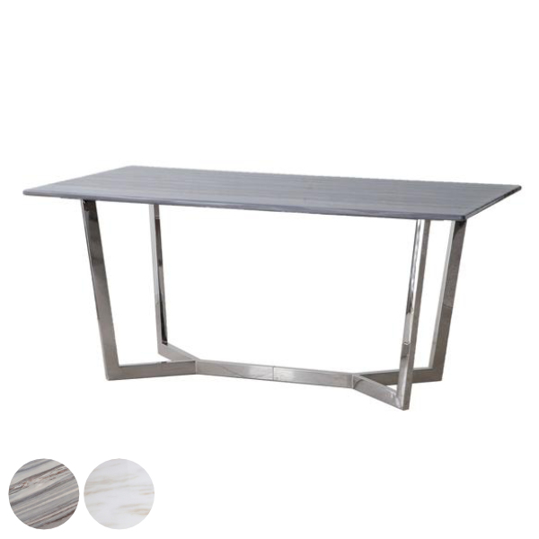 シンプルな天板に特徴のあるステンレスクロムメッキの脚がゴージャスさを掻き立てるダイニングテーブルです。お部屋に置くだけで洗練されたモダンな空間を演出します。