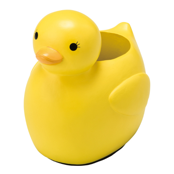 つぶらな瞳の愛らしい表情で湯船にプカプカ浮かんでいるような、可愛いアヒルのペンスタンドです。机の上のこまごましたものをまとめて預かってくれます。