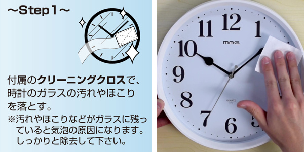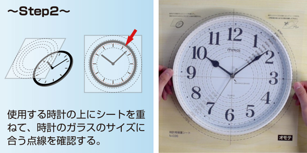 ●ガラス面が10~30cmまでの時計に対してサイズを合わせられるガイドライン付きです。