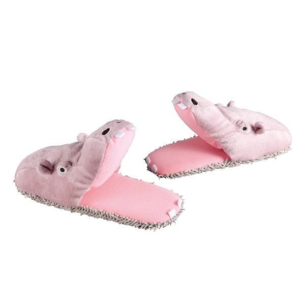 モップスリッパ 23~26cm 動物 アニマル ( マイクロファイバー スリッパ モップ 床掃除 ルームシューズ 掃除 そうじ ほこり お掃除スリッパ 拭き掃除 掃除グッズ リビング キッチン 履くだけ 髪の毛 汚れ 埃 チリ 清掃グッズ ) 【 カバ 】