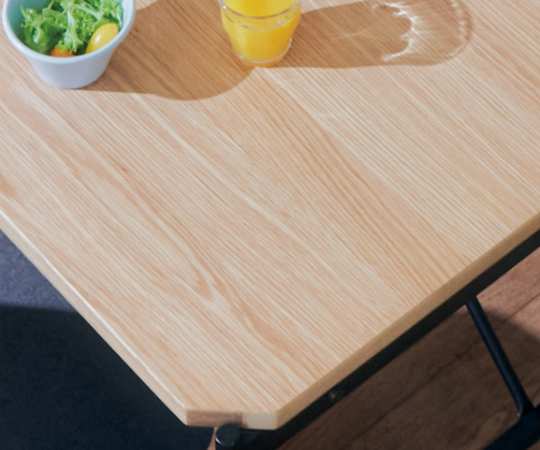 オーク材の突板を使用しクリア塗装を施した木目が美しい天板は、お部屋に馴染み温かみのある空間を演出してくれます。