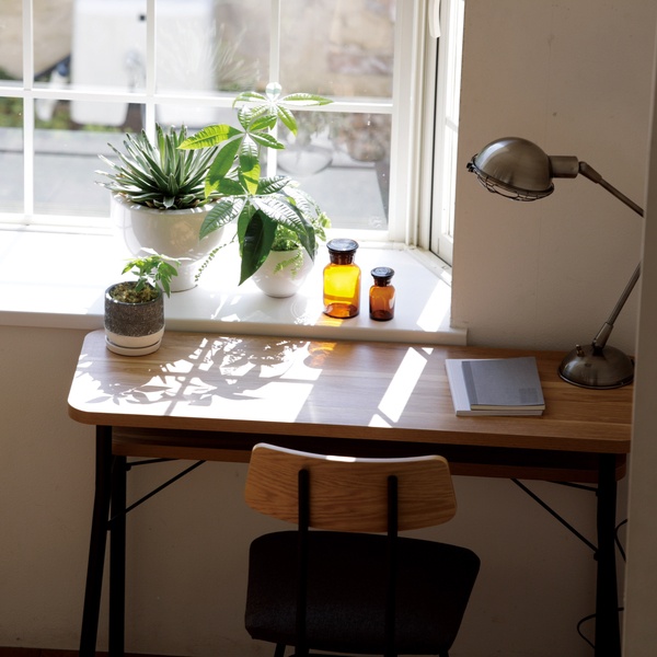 テーブル下に棚板があるので読みかけの本などもサッと収納できます。散らかりにくく整理整頓も簡単です。