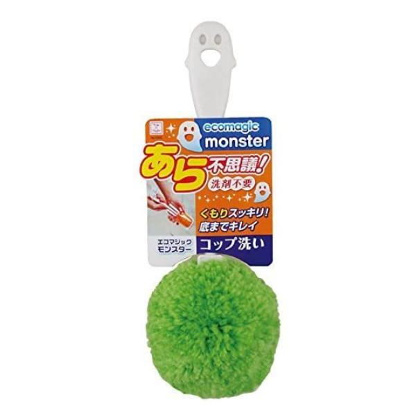 キッチンスポンジ 洗剤不要 水だけ エコマジック モンスター コップ洗い ( コップ用スポンジ グラス用スポンジ ボトルブラシ ボトル洗い キッチン スポンジ 柄付きブラシ 柄付きスポンジ コップ用 グラス用 水筒用 ) 【 グリーン 】