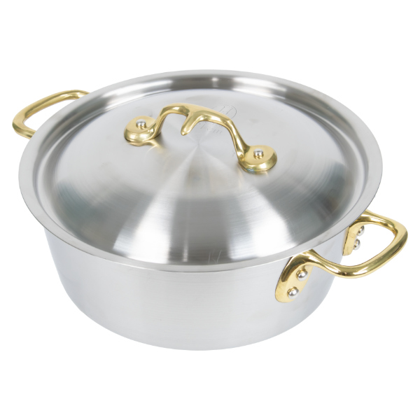 どの部分の厚さもかわらないという均一性と熱伝導率が良いので保温力がアップし熱を逃さないことが自慢の両手鍋です。アルミ製なので軽くて扱いやすくお手入れも簡単です。