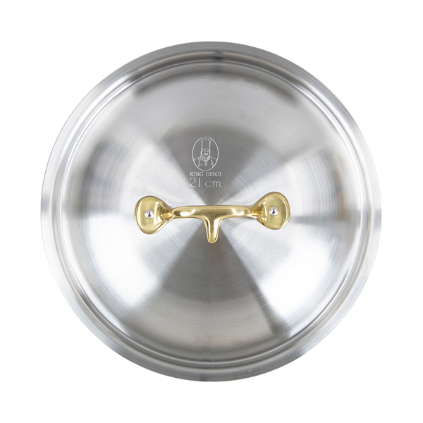 熱伝導の低い特殊合金を使用しているゴールドの取っ手がポイントです。フタについている取っ手は調理中でも鍋にかけることができる便利なT字形状です。