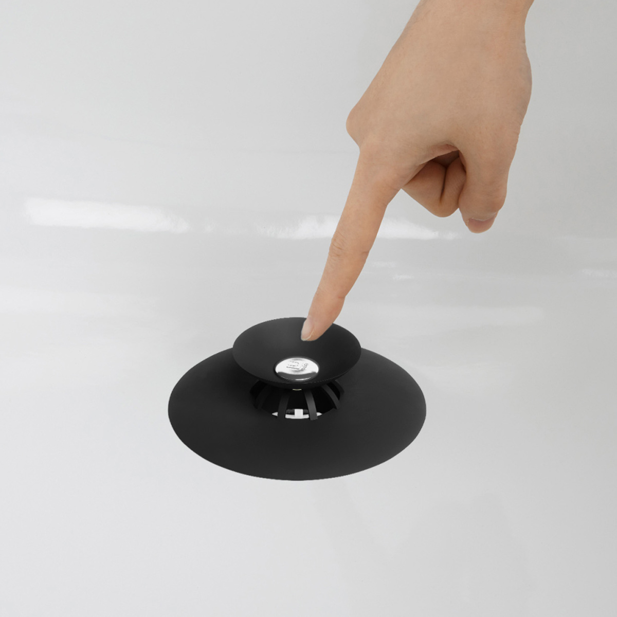 排水口ごみ受け umbra アンブラ フレックス ドレインストッパー ヘアキャッチャー ( 排水口 ゴミ受け 水止め 排水蓋 浴槽栓 浴槽 バスタブ 止水 栓 ワンプッシュ シリコン 直径3.7cm 簡単設置 くさり無し ) 【ブラック】