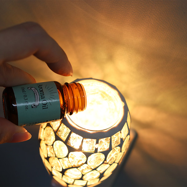 ぐっすり眠りたい、勉強で疲れた、そんな時はお好みのアロマオイルを垂らして、癒しの空間をつくることができます。上部のくぼみにアロマオイルを垂らすと、電球の熱で温められて蒸発し、香りがやわらかく広がります。