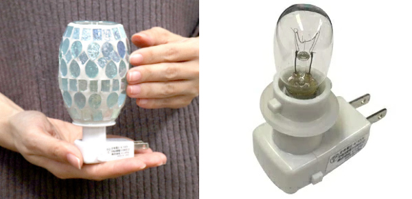 | 使いやすいコンパクトサイズ コンパクトなサイズ感と、コンセントにさすだけの手軽さなので、お部屋ごとに雰囲気を変えてみたり、その時の気分でライトを変えてみたりと楽しみ方がたくさんあります。 | 電球は交換可能 LED電球に交換することもできます。アロマライトとしてご使用される場合、白熱電球はLED電球と比べて熱量が多いため、香りが広がりやすく、よりアロマをお楽しみいただけます。 |