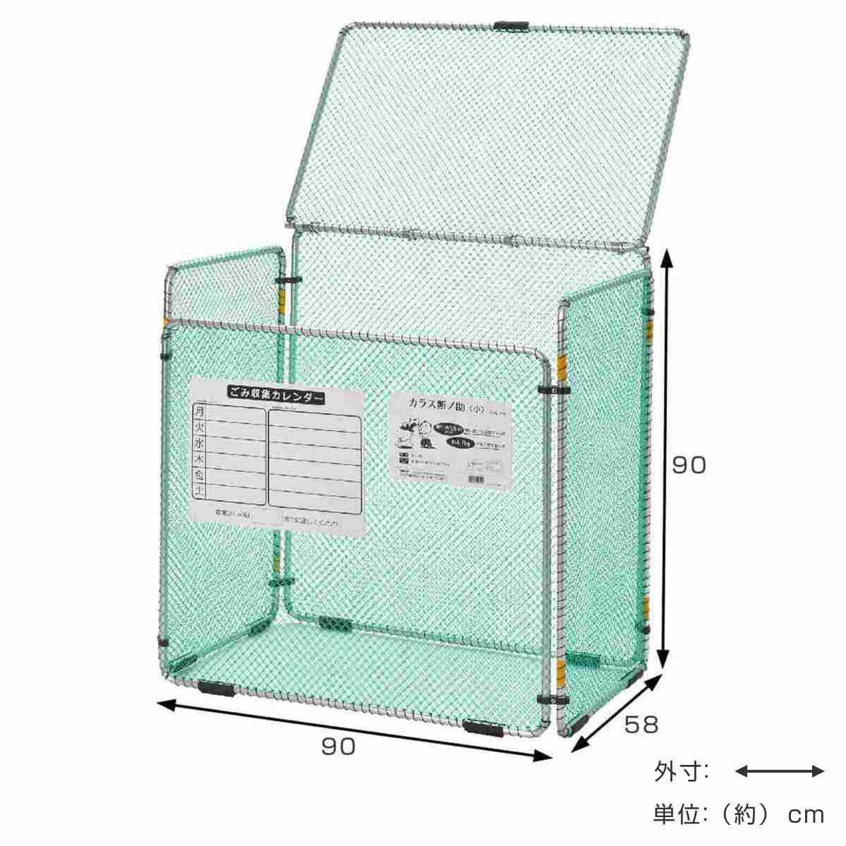 ゴミ収集 ゴミステーション 370L 折りたたみ 幅90×奥行57×高さ90cm カラス断ノ助 小 ( ゴミ カラスよけ 収集ボックス ネット ボックス カレンダー付き からす カラス よけ カラスよけネット ゴミネット 折り畳み コンパクト )