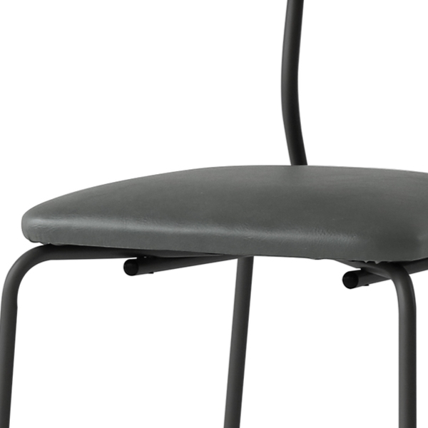 シンプルですっきりとしたフォルムのチェアです。レザー調の張地とスチールが調和してお部屋に高級感を演出します。また、細身の脚部はスタイリッシュな印象を与えてくれます。