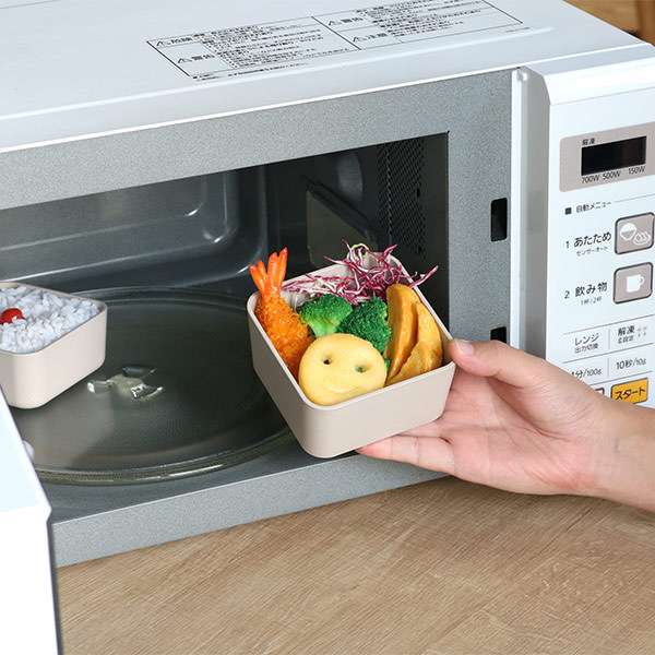 竹蓋とシール蓋を外せば、電子レンジが使用できます。ランチタイムには温かいお弁当をお楽しみいただけます。