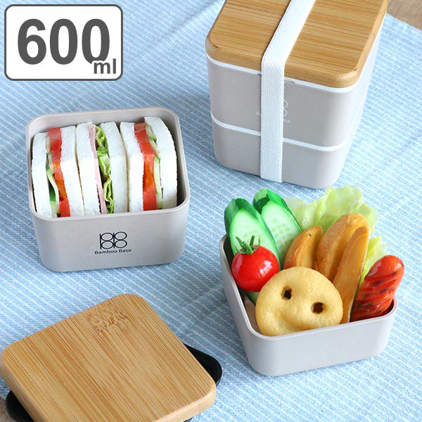 お弁当箱 2段 600ml 抗菌 竹蓋 Bamboo Base スクエアネストランチ ( 弁当箱 ランチボックス 二段 弁当 レンジ対応 食洗機対応 女子 レンジOK 食洗機OK お弁当 ランチベルト付き 入れ子式 女性 大人 おしゃれ ) 【 ホワイト 】