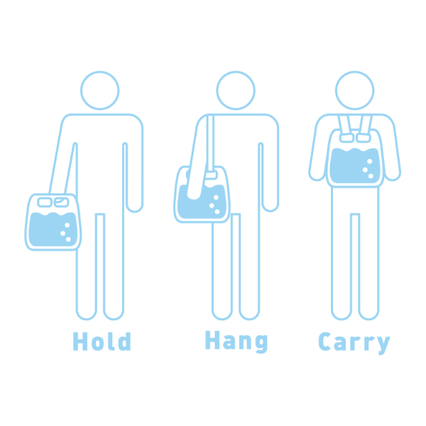 背負ったり、肩にかけたり、手に下げたり、多彩な持ち方が出来ます。リュックとして背負えば、女性やお子様でも震災時に楽に給水所から水を運ぶことが出来ます。防災グッズとしてだけでなく、ピクニックやBBQの際の飲み水入れとしても役立ちます。