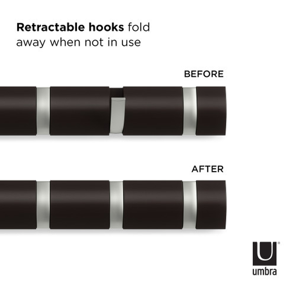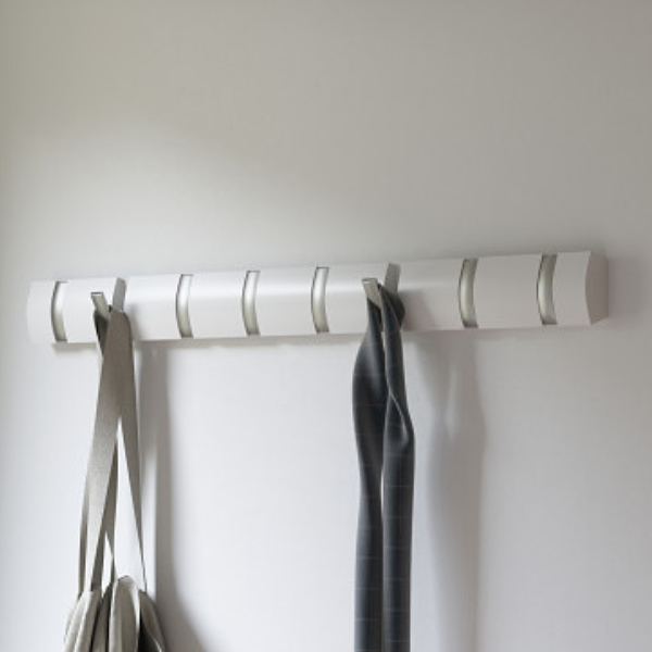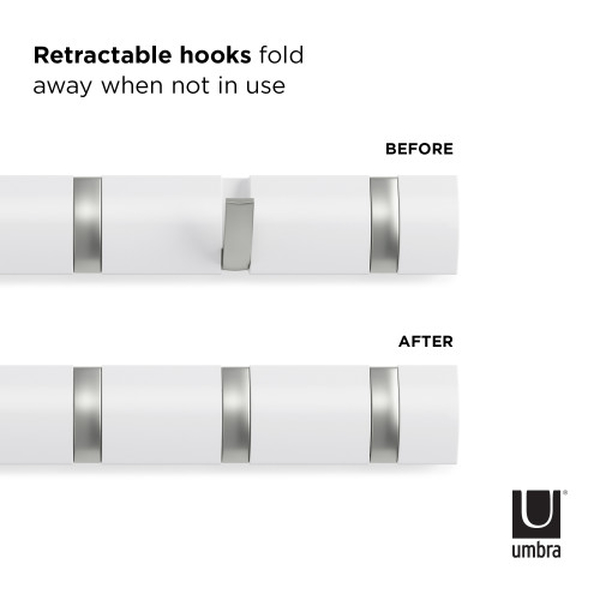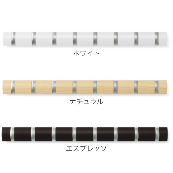 umbra アンブラ フック 8連 フリップフック ウォールハンガー 壁 ( ウォールコートハンガー 壁面収納 コートハンガー 壁掛け収納 壁面 収納 木目 ウォールシェルフ ハンガーフック 洋服掛け 玄関 リビング おしゃれ ) 【ホワイト】