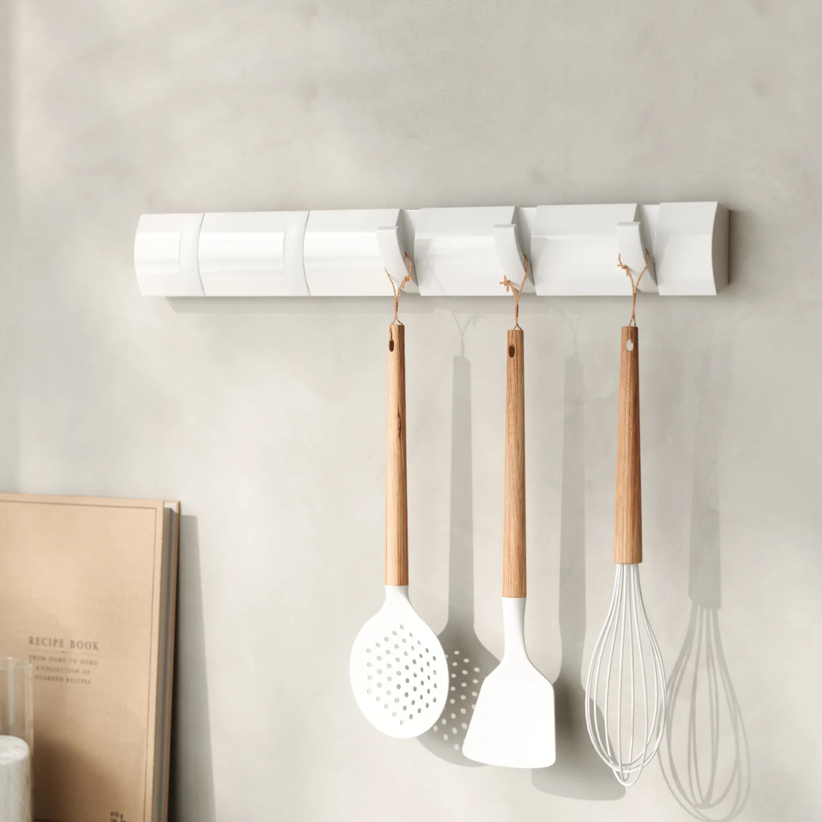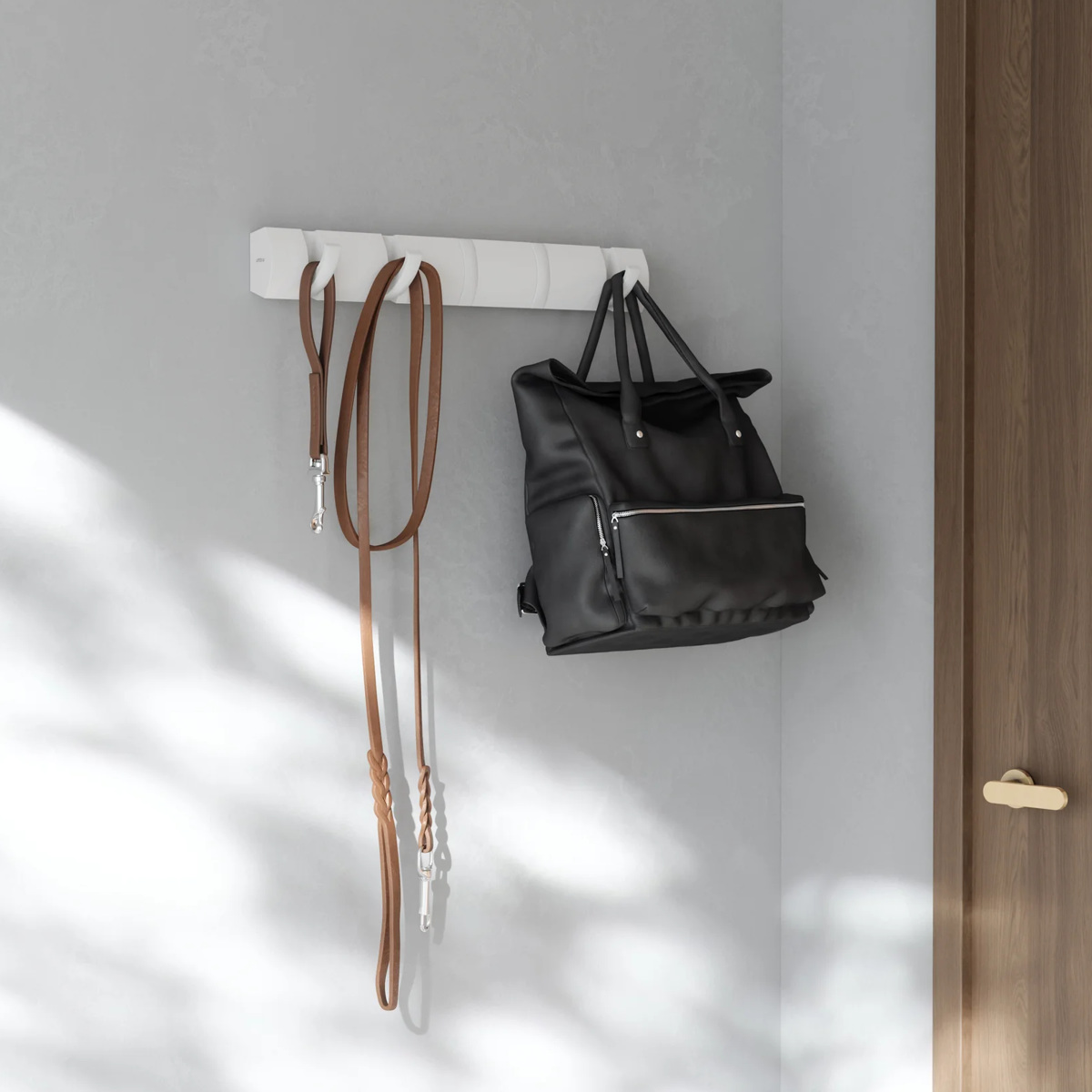 ウッドをベースとした温かくシンプルなデザインで、玄関やリビング、寝室など設置場所を選ばずスッキリ馴染みます。使用しないときはフックを閉じて、すっきりとした印象に。インテリアの一部としても楽しめます。
