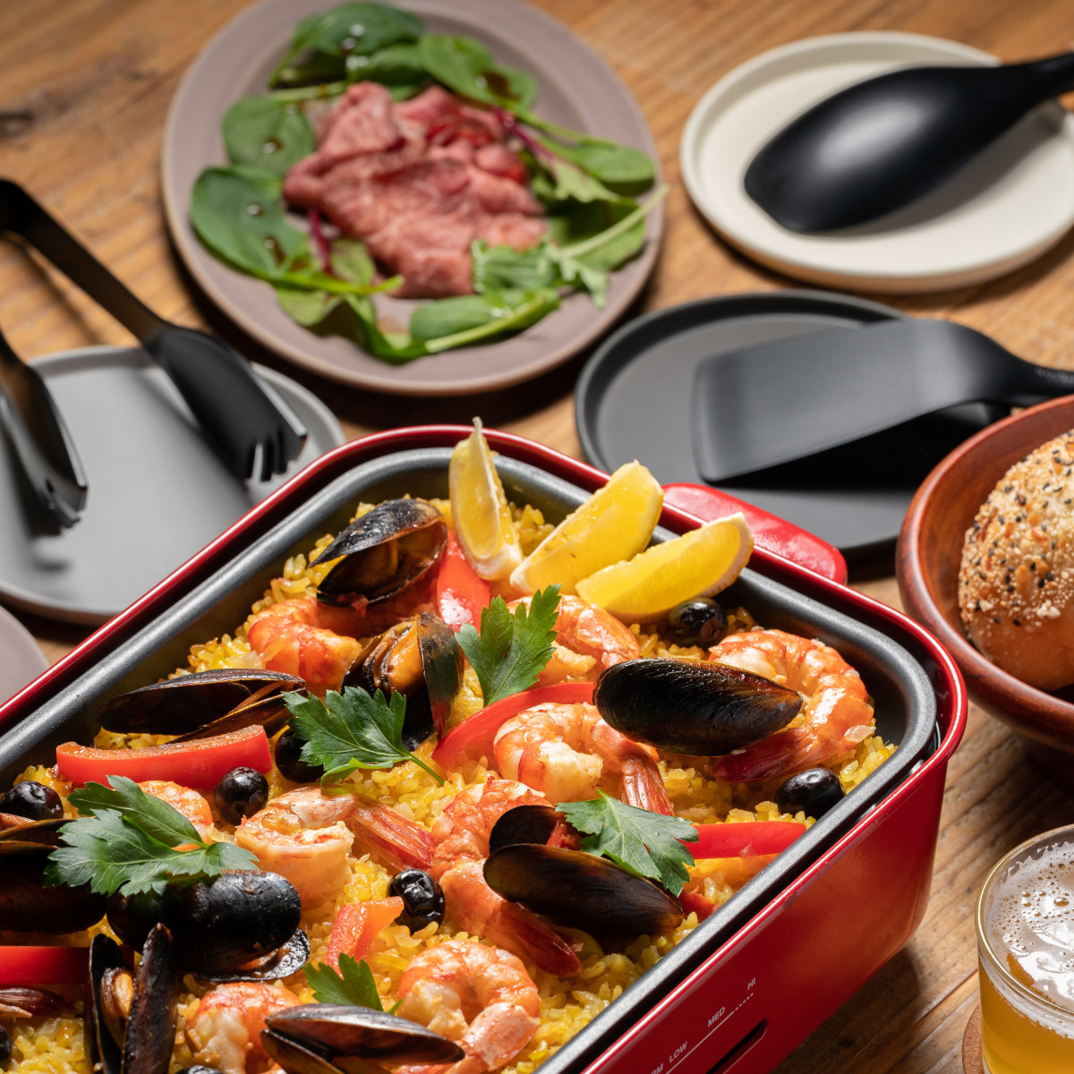 ツーリーシリーズは卓上で必要な焼き・炒める・切る・取り分けるの各シーンで活躍するナイロンツールです。ホットプレートを使った料理など、おうち時間にピッタリなアイテムです。