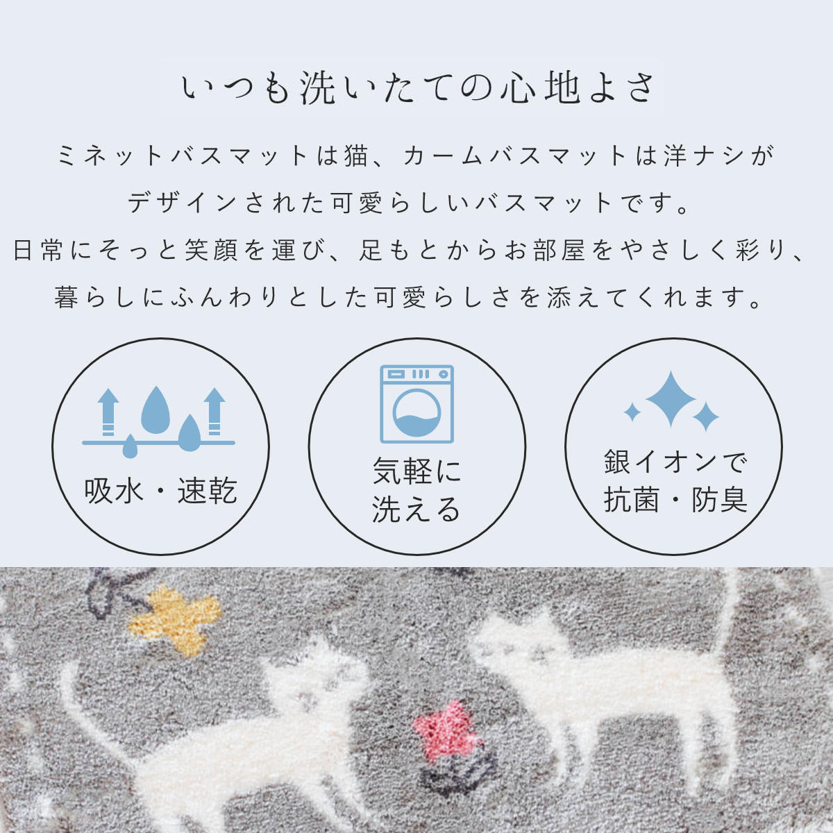 バスマット 乾度良好 ミネット カーム 40×55cm 速乾 Ag抗菌 ( マット 足ふきマット 風呂マット 防臭 銀 銀イオン 北欧 抗菌 銀抗菌 吸水マット お風呂マット 足拭きマット 浴室マット すべり止め 日本製 ウィルトン織り ) 【グレー】