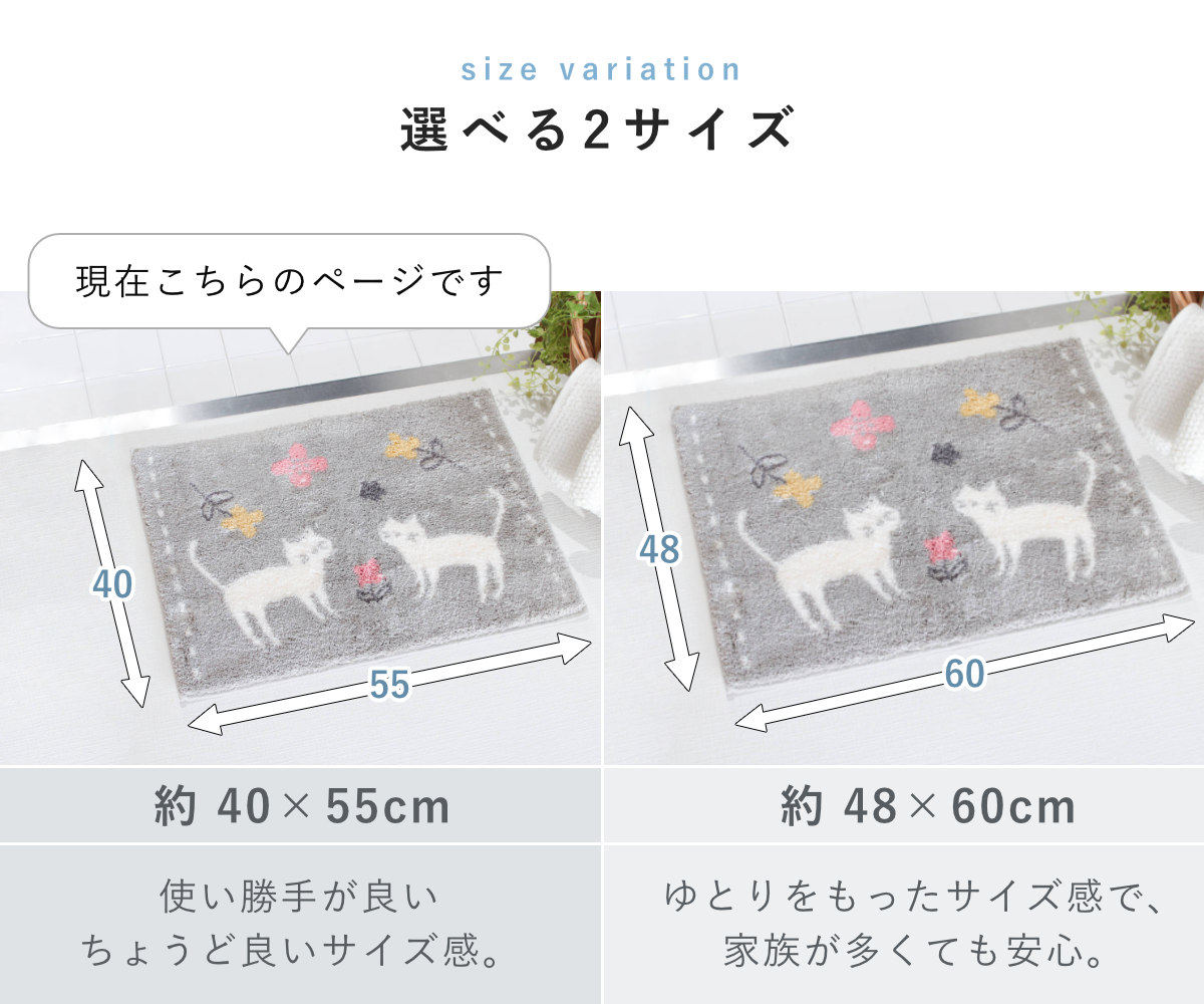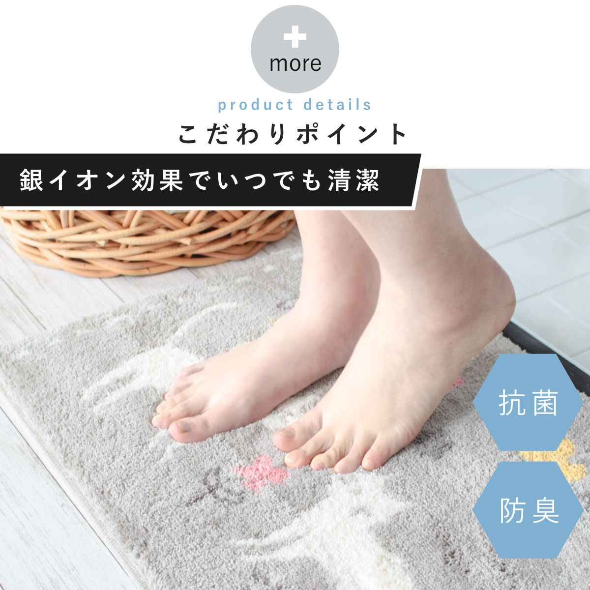 洗っても効果が続く抗菌防臭加工付きで、マット上の菌の増殖を抑制するので、いつまでも衛生的にお使いいただけます。