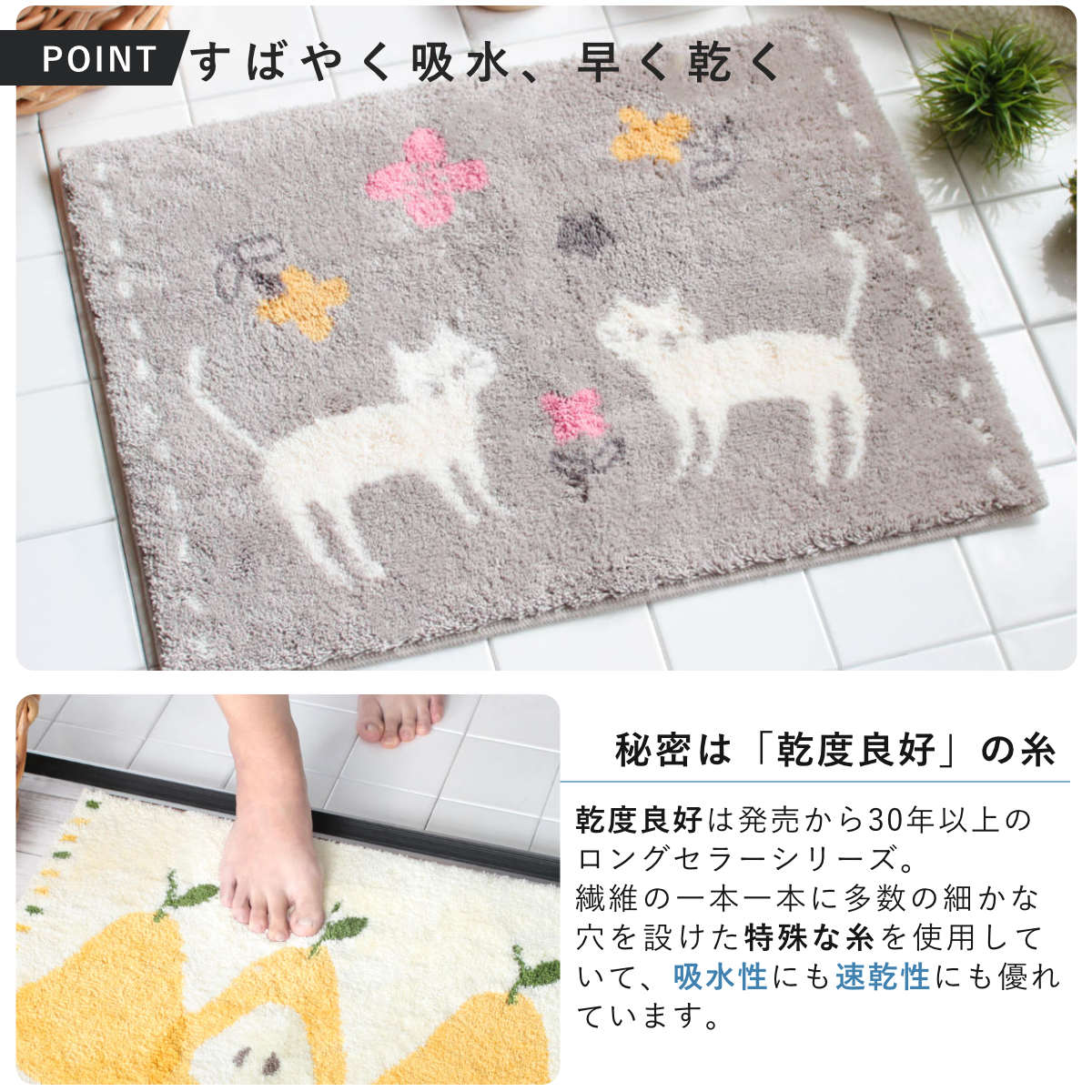 バスマット 乾度良好 ミネット カーム 40×55cm 速乾 Ag抗菌 ( マット 足ふきマット 風呂マット 防臭 銀 銀イオン 北欧 抗菌 銀抗菌 吸水マット お風呂マット 足拭きマット 浴室マット すべり止め 日本製 ウィルトン織り ) 【イエロー】