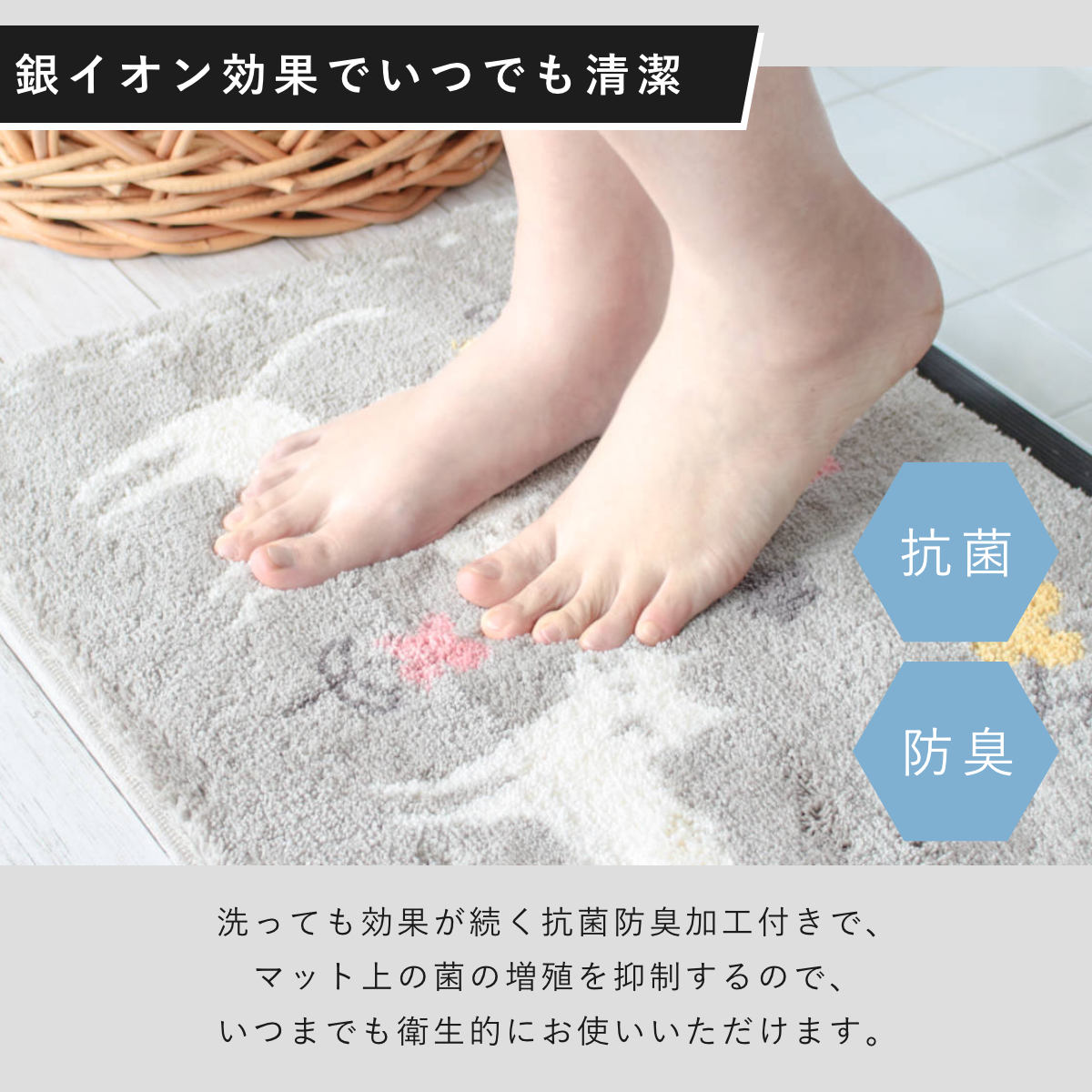 洗っても効果が続く抗菌防臭加工付きで、マット上の菌の増殖を抑制するので、いつまでも衛生的にお使いいただけます。