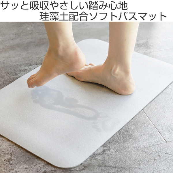 珪藻土配合ソフトバスマット 60×40cm 珪藻土バスマット 珪藻土 バスマット やわらかい ( マット 珪藻土マット 足ふきマット 柔らかい 抗菌 割れない 丸めて収納 洗える 速乾 吸収 洗面マット 60 40 )