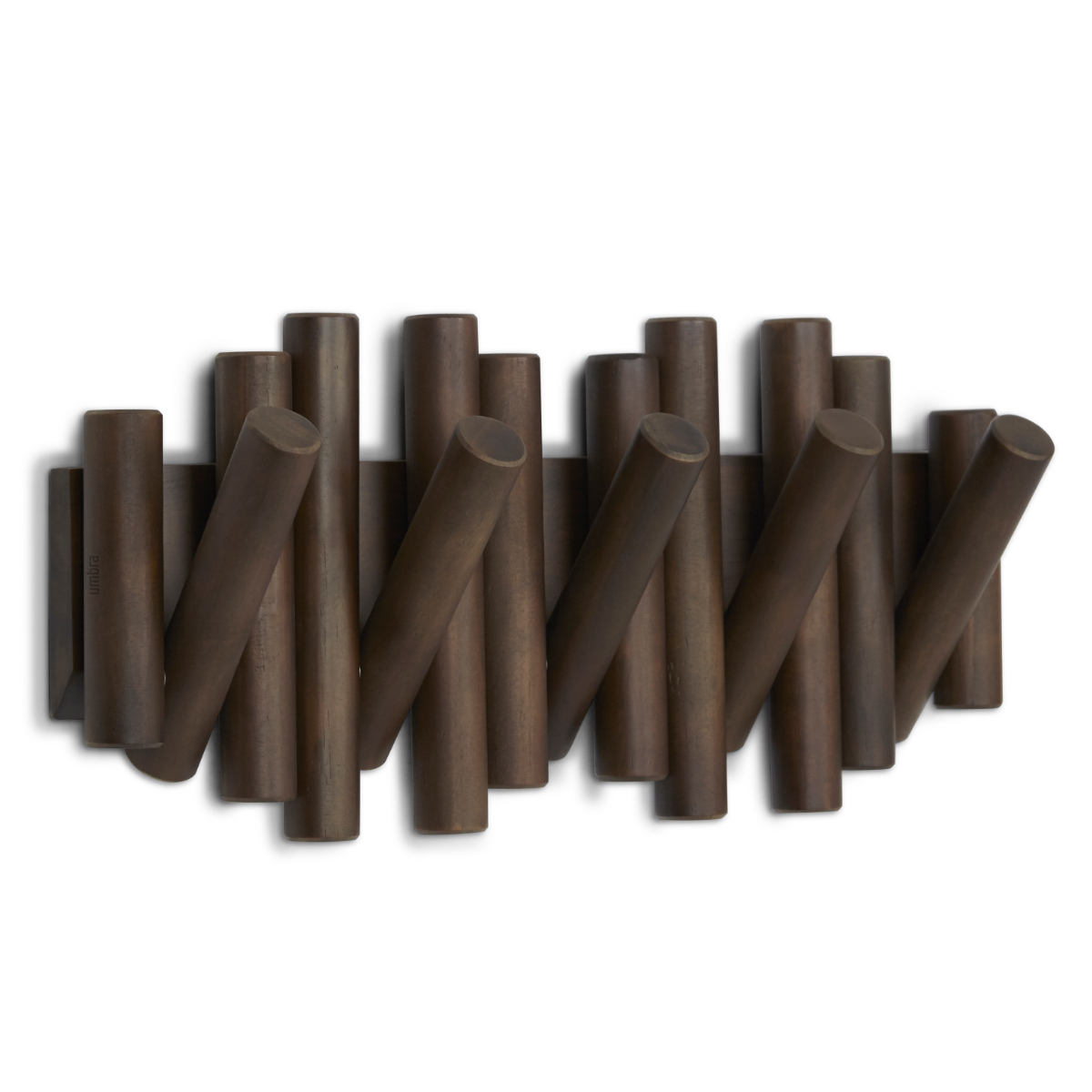 umbra アンブラ フック 5連 ピケットフック 壁 ( 壁掛けフック 幅38cm 折りたたみ 壁面収納 ハンガーフック コート掛け 収納 壁掛け 天然木 木製 おしゃれ 見せる収納 省スペース コートハンガー 玄関 ) 【ウォールナット】
