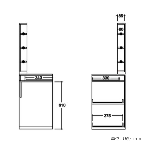 ![]() ドレッサー 幅75cm 【▲このページの商品】 | ![]() ドレッサー 幅95cm | ![]() ドレッサー 幅150cm |