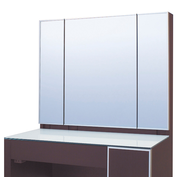 | 材質 | 天板:ガラス(飛散防止ホワイトフィルム貼りガラス) 扉:アルミフチ材、ミラー 本体・扉:突板(タモ天然木化粧繊維板、ウォールナット天然木化粧繊維板・ウレタン樹脂塗装)、ホワイト(MDF・ウレタン樹脂塗装) 引出し:キリ材、プリント化粧繊維板 |