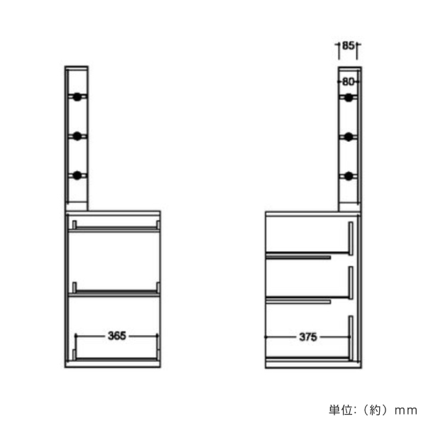 | 引き出し1段あたり耐荷重 | 大:約7.5kg、小:約3kg |