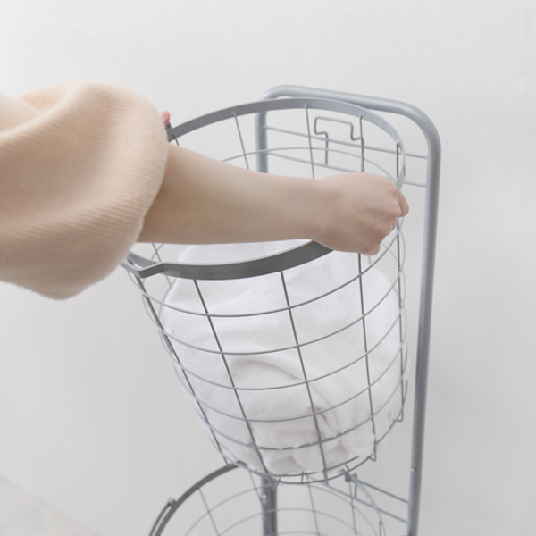 2つのバスケットで分別できるランドリーラック ラウンド