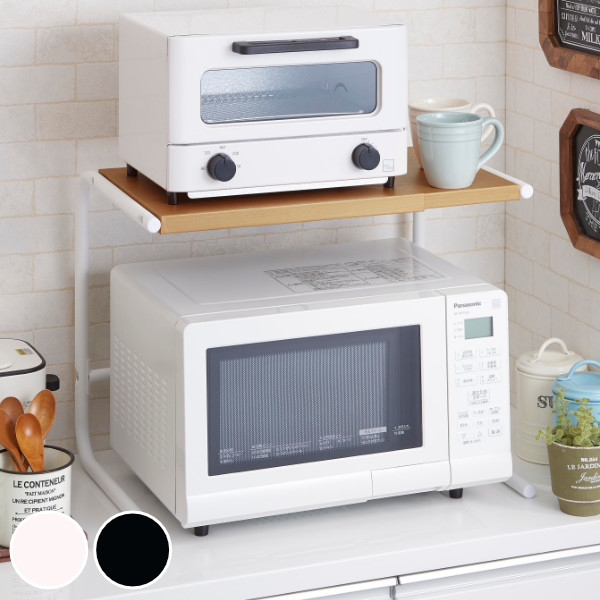 置くだけで上下に収納スペースができあがる木目調の天板がお洒落なラックです。散らかりがちな場所をすっきりきれいに整理でき、ちょっと収納スペースがほしいと思うその場所におけるコンパクトサイズです。調理家電をまとめて置けば、調理スペースが広がります。キッチン周りに溢れている調理家電の収納場所、散らかりがちなキッチンストックの小物置き場として便利です。