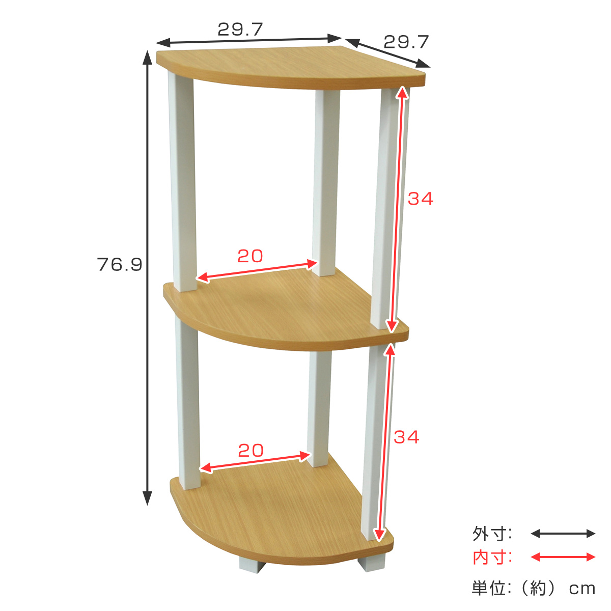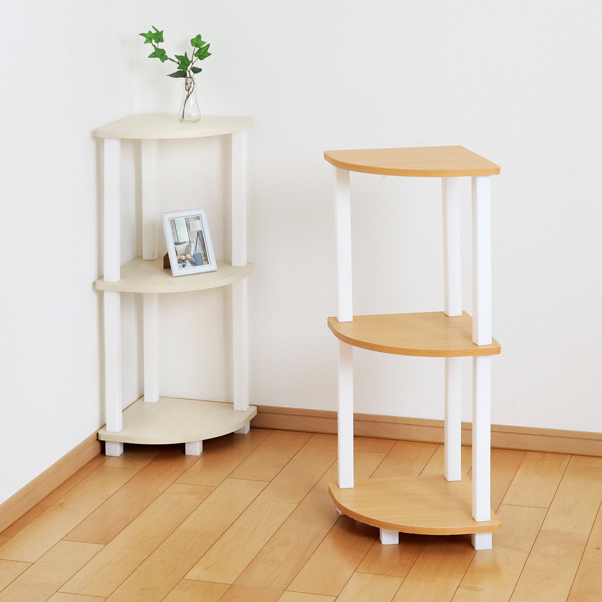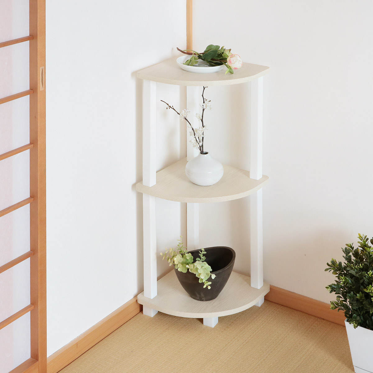コーナーラック 2段 簡単組立て 木製 ディスプレイラック 約幅30cm ( 収納ラック 収納 収納棚 飾り棚 ラック コーナー 花台 オープンラック 木目 コーナー用 コーナー置き シンプル 白 ホワイト おしゃれ )【 ナチュラル 】