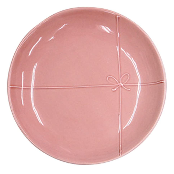 リボンが掛かった贈り物のような器のシリーズです。可憐に揺れるリボン柄は見ている人の心を和ませ、優しい色味で毎日の食事を引き立てる。使うだけでぬくもり溢れるテーブルになります。
