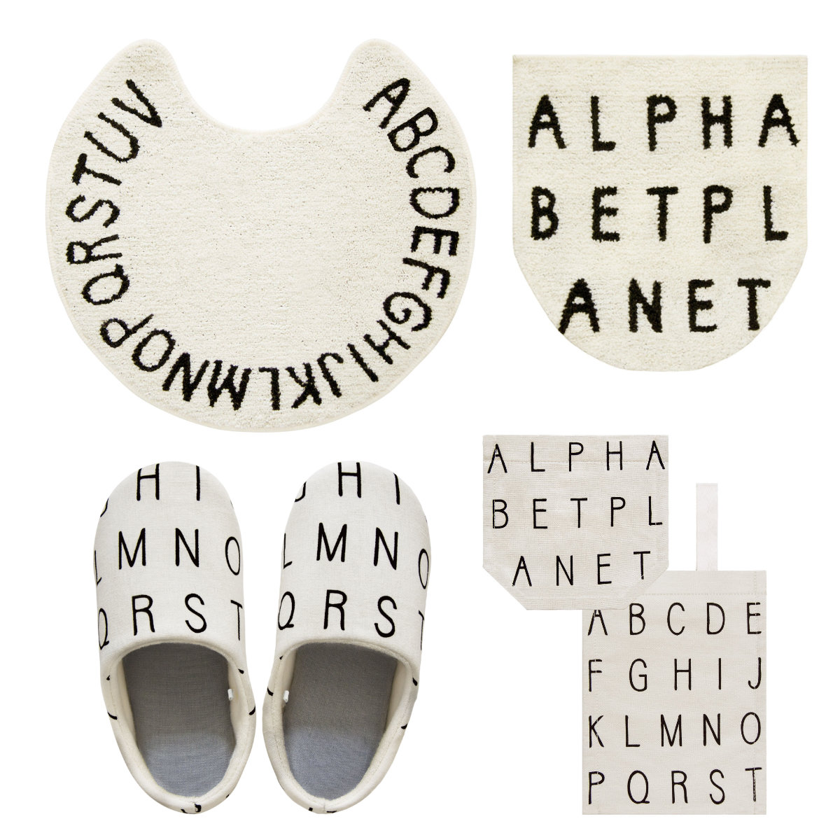 トイレマット セット 4点セット ソルトルトイレ4点セット アルファベット ( 蓋カバー トイレスリッパ トイレットペーパーホルダーカバー ホワイト グレー マット カバー スリッパ ペーパーホルダーカバー 兼用フタカバー 55×60cm ) 【ホワイト】