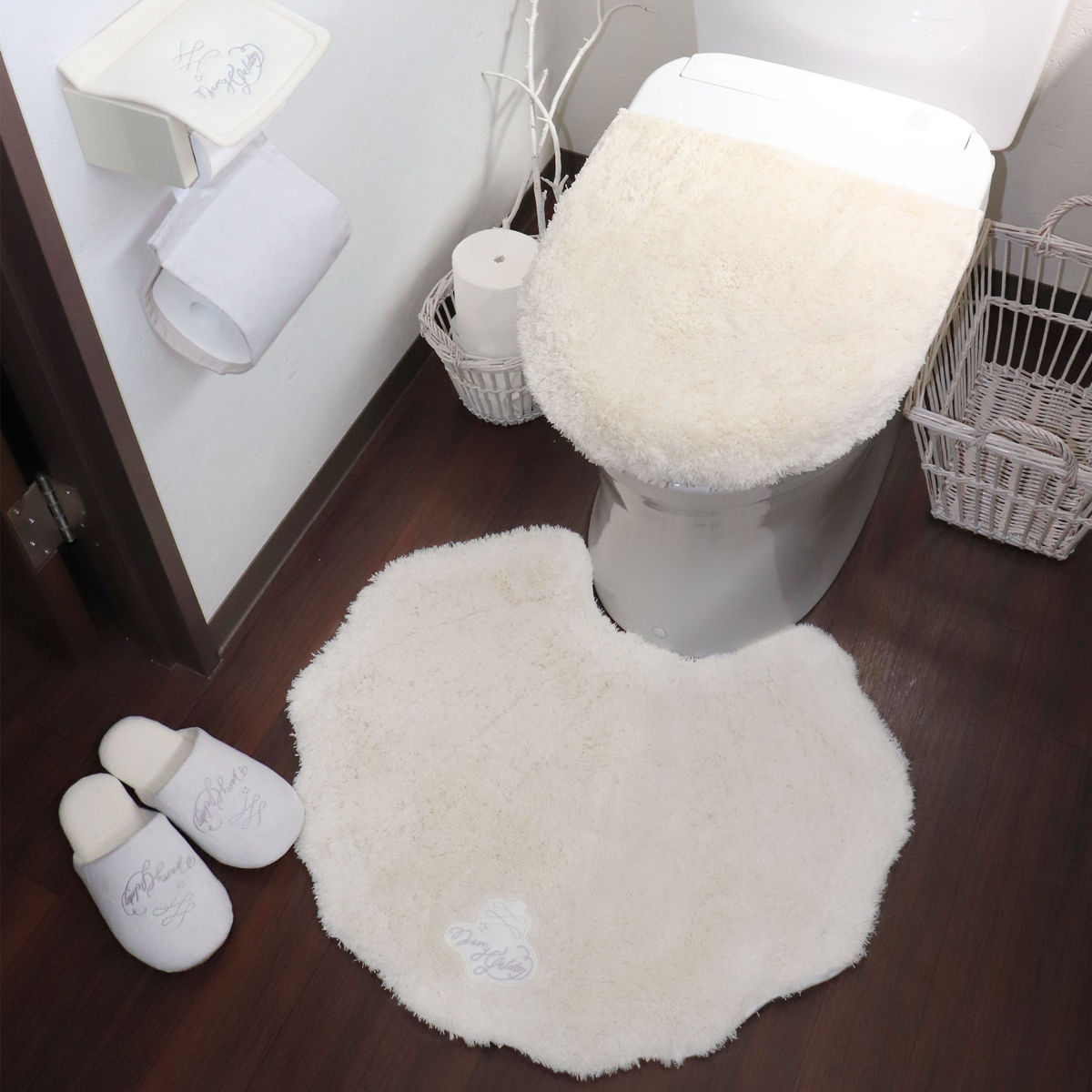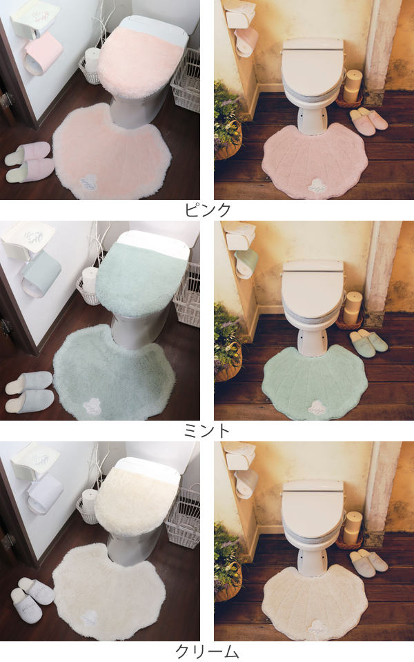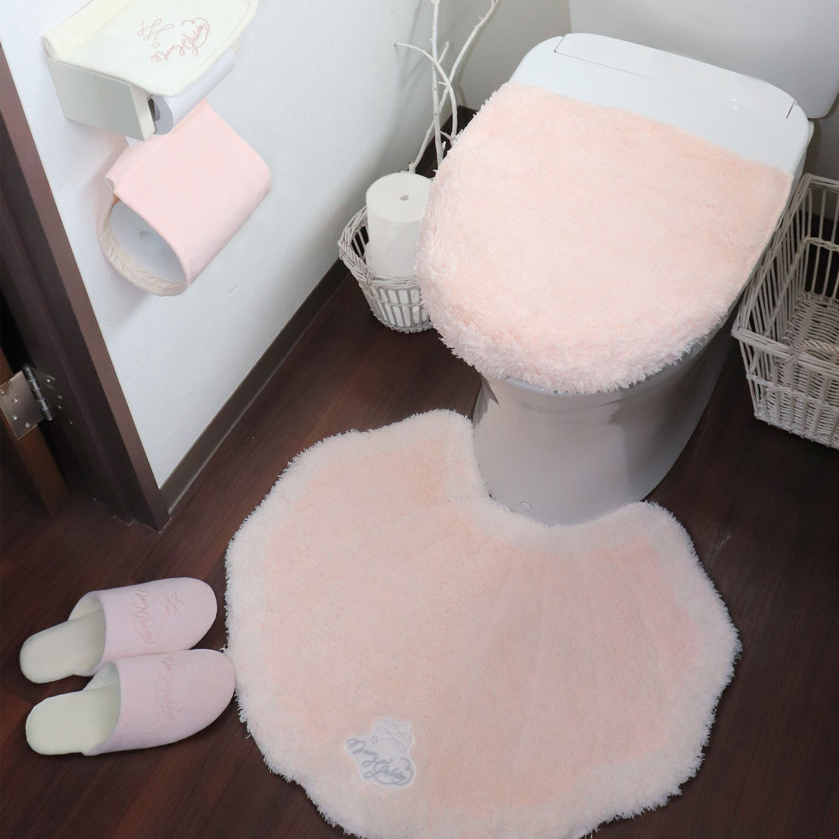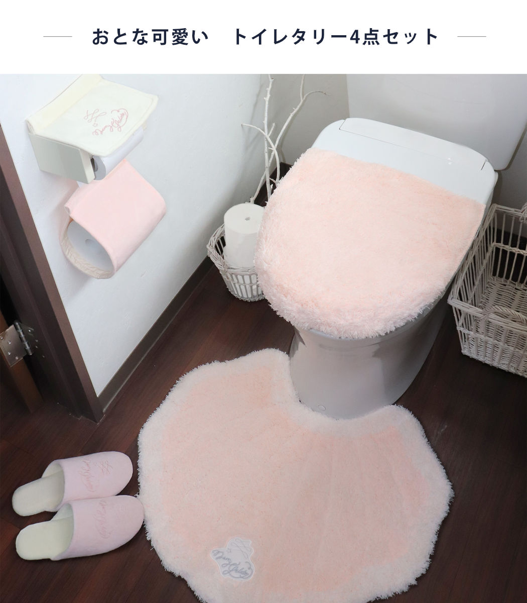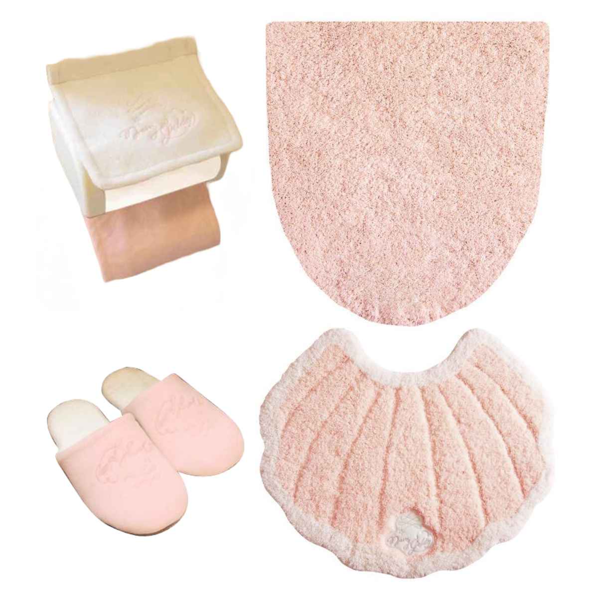トイレマット セット 4点セット メリージェラートトイレ4点セット シェル ( 蓋カバー トイレスリッパ トイレットペーパーホルダーカバー マット カバー スリッパ ペーパーホルダーカバー 兼用フタカバー 60×60cm ) 【ピンク】