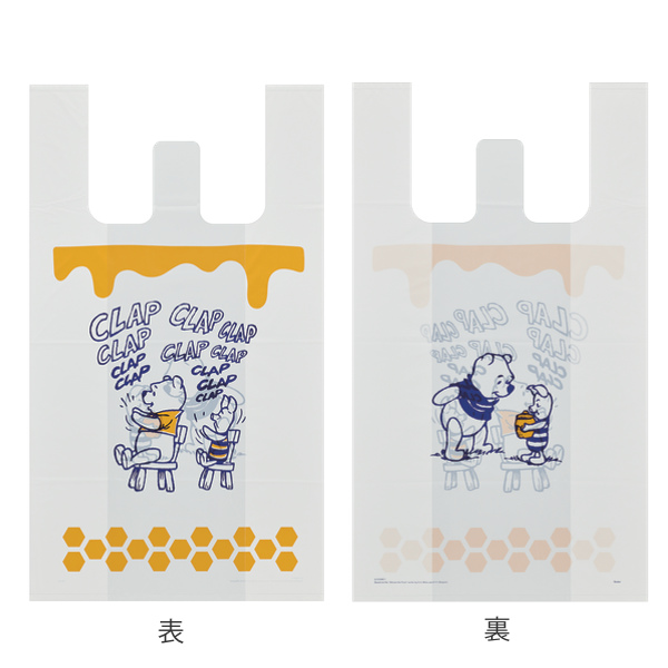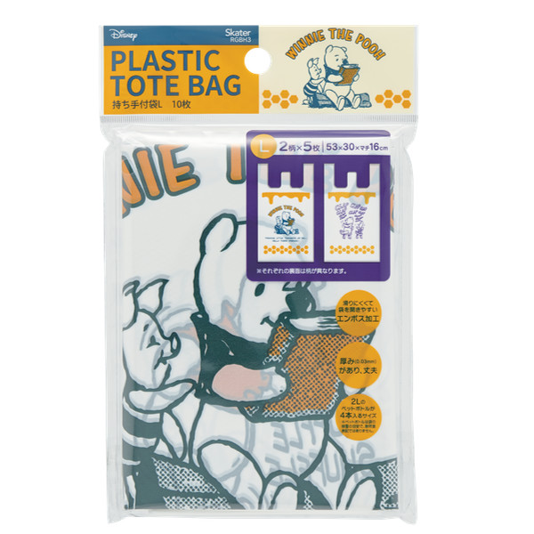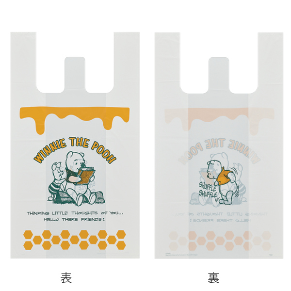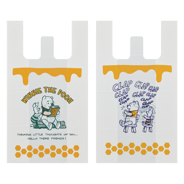 レジ袋 くまのプーさん 持ち手付き袋 L 53x30cm マチあり ( ポリ袋 手提げ 買い物袋 10枚入り マチ 白 柄 キャラクター ディズニー プーさん 手提げ袋 買い物 袋 バッグ 持ち帰り 手さげ 小分け袋 持ち手付き かわいい )