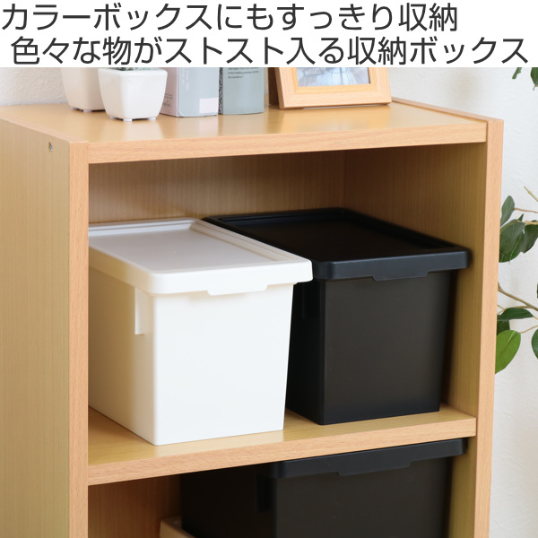 ボックスを横に2個並べてもカラーボックスにぴったり収まるサイズです。ストストは全3サイズ展開で、各サイズを組み合わせてカラーボックスに収納できます。組み合わせは自由で、カラーボックスのサイズや使用用途に合わせてお使い頂けます。カラーボックス以外にもパントリーやオープンラックでも活用できます。