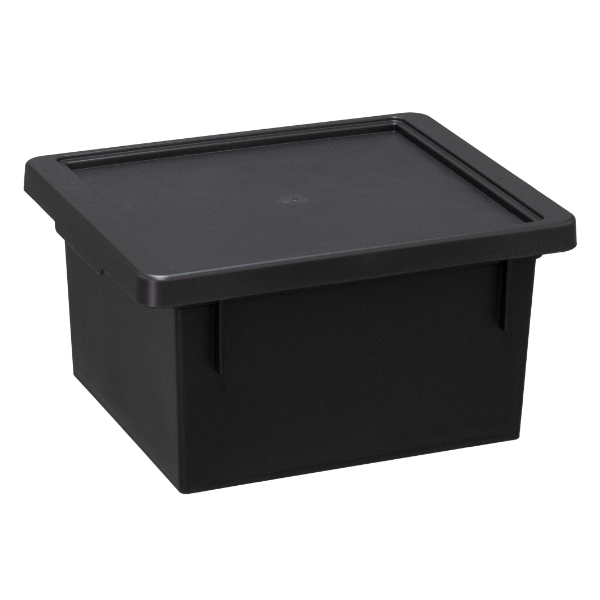 収納ボックス ワイド ロー 幅21.5×奥行26×高さ13.5cm ストスト ふた付き 小物収納 4個セット ( フタ付き 収納ケース 小物入れ 収納 小物ケース プラスチック キッチン収納 小物収納ケース 白 黒 日本製 おしゃれ ) 【 ブラック 】