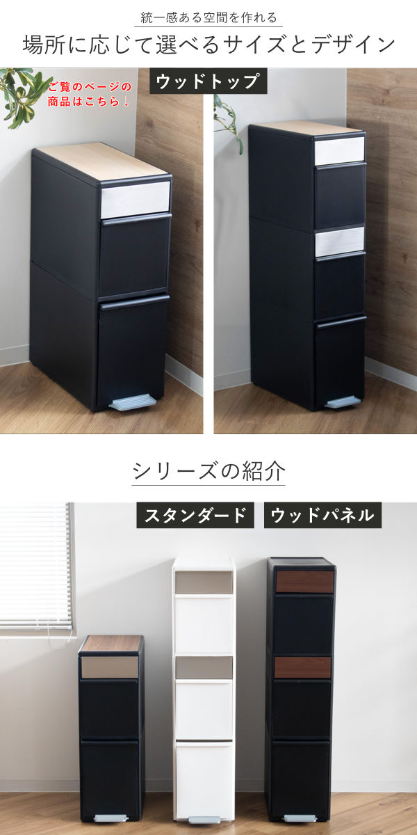 ![]() 3段 55L ウッドトップ | ![]() 2段 35L 木目調パネル | ![]() 3段 55L 木目調パネル |