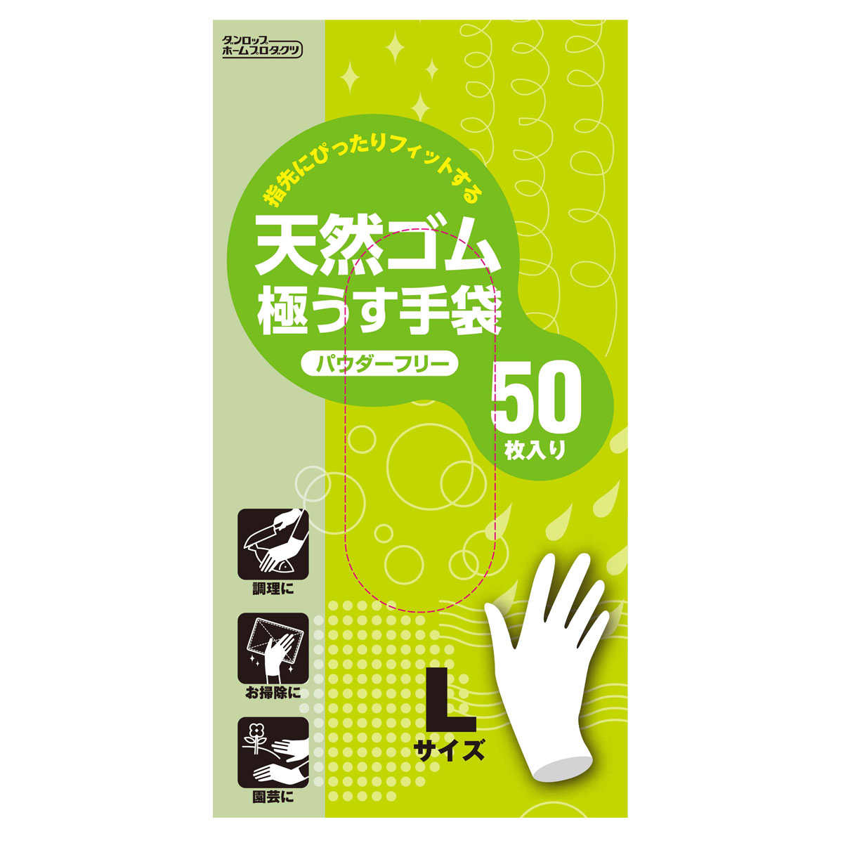 ゴム手袋 Lサイズ 50枚入り 天然ゴム極薄手袋 パウダーフリー ( 使い捨て 使い捨て手袋 粉なし 掃除 キッチン 調理 料理 園芸 ガーデニング 介護 作業用 衛生用品 左右両用 )